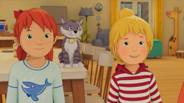 Natürlich bleiben Conni und Kater Mau nicht allein zu Hause, denn Opa Willi ist gekommen und Anna und Simon dürfen sogar bei ihr übernachten.