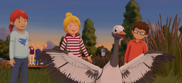 Doch dann landet ein verletzter Kranich bei ihnen und braucht ihre Hilfe. Denn nicht nur die Verletzung macht Kranich Klaus zu schaffen, auch der spießige Nachbar Herr Oswald, der seinen astrein gepflegten Rosengarten in Gefahr sieht, ist hinter Klaus her. Gut, dass Conni und ihre Freunde Unterstützung von der Tierschützerin Renata und der Polizistin Selena bekommen.